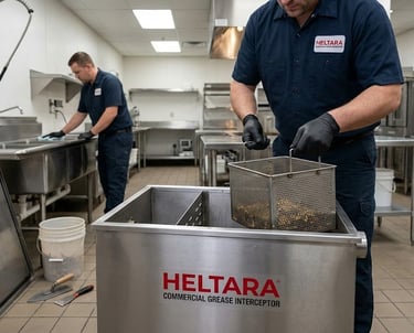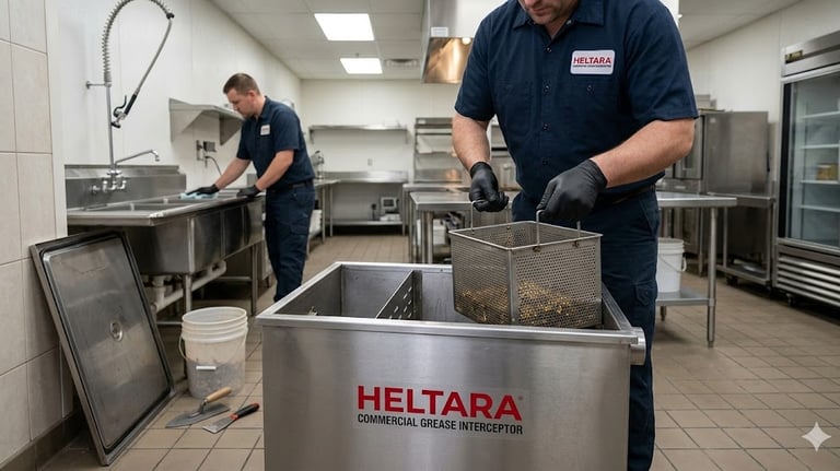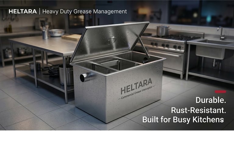 "Heltara Grease Traps protect your kitchen drainage by separating oil and grease from wastewater"